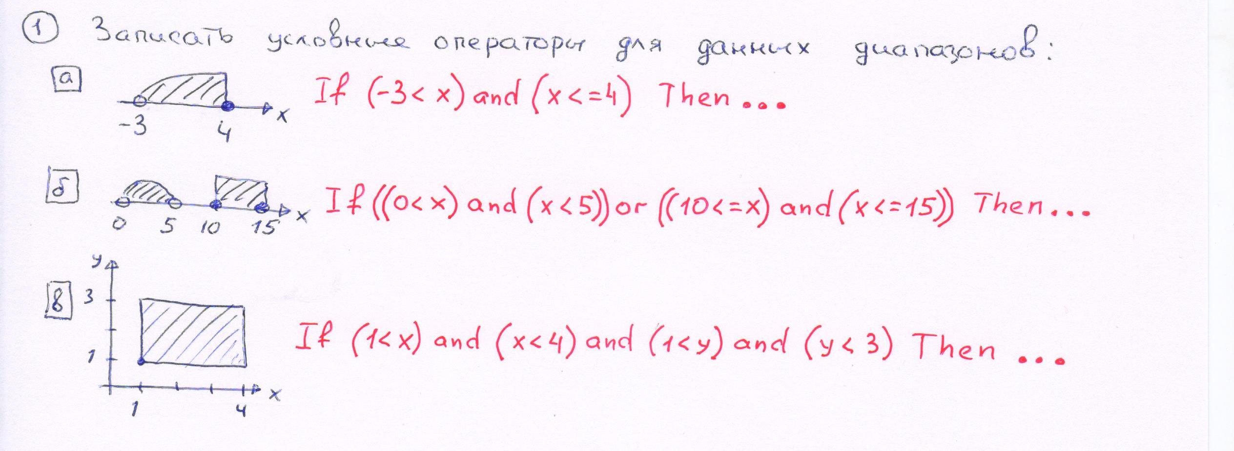 Записать условные операторы для данных диапазонов.