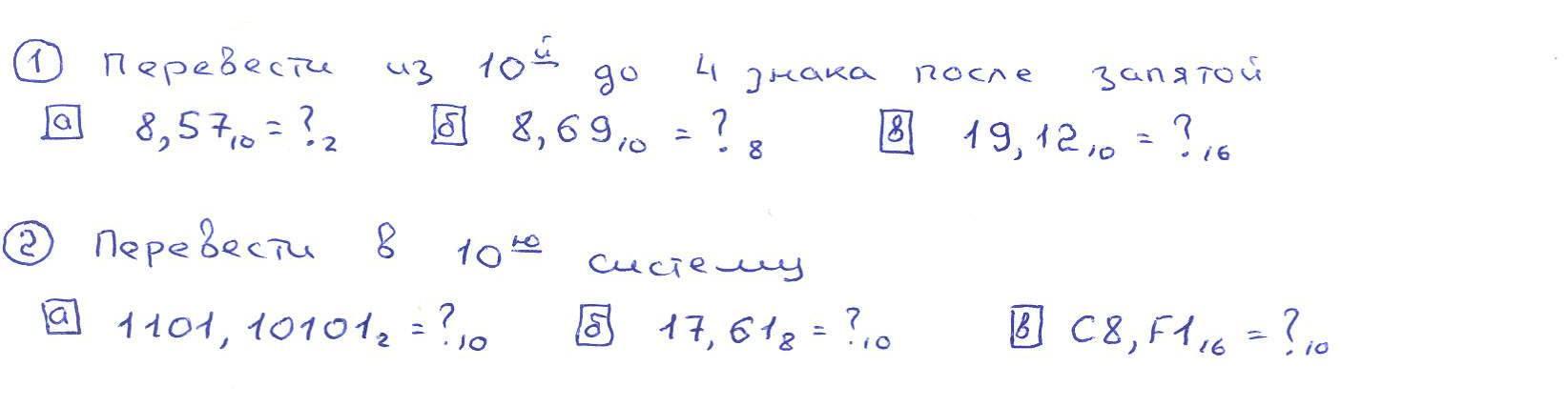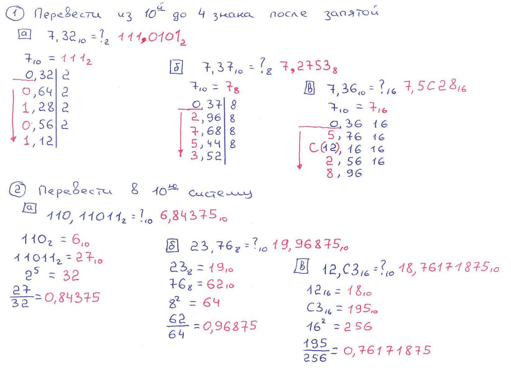 1. Перевести из 10-й системы до 4 знака после запятой.