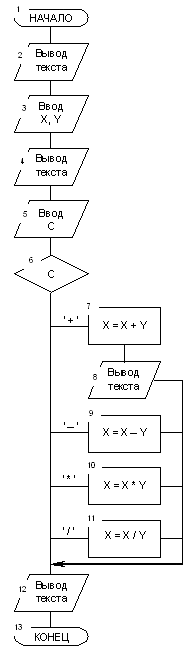 Предназначен для выбора одного из нескольких возможных продолжений программы. Форма записи: