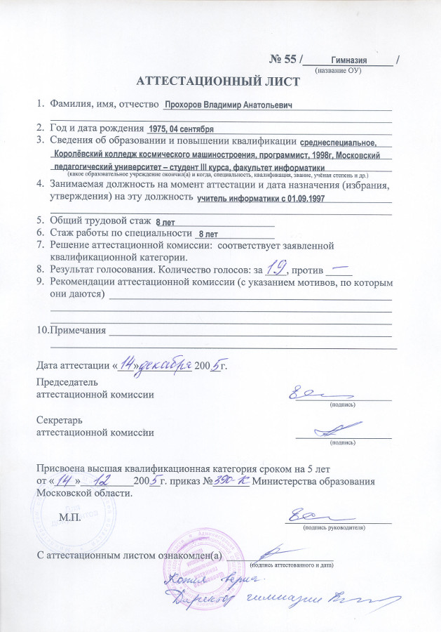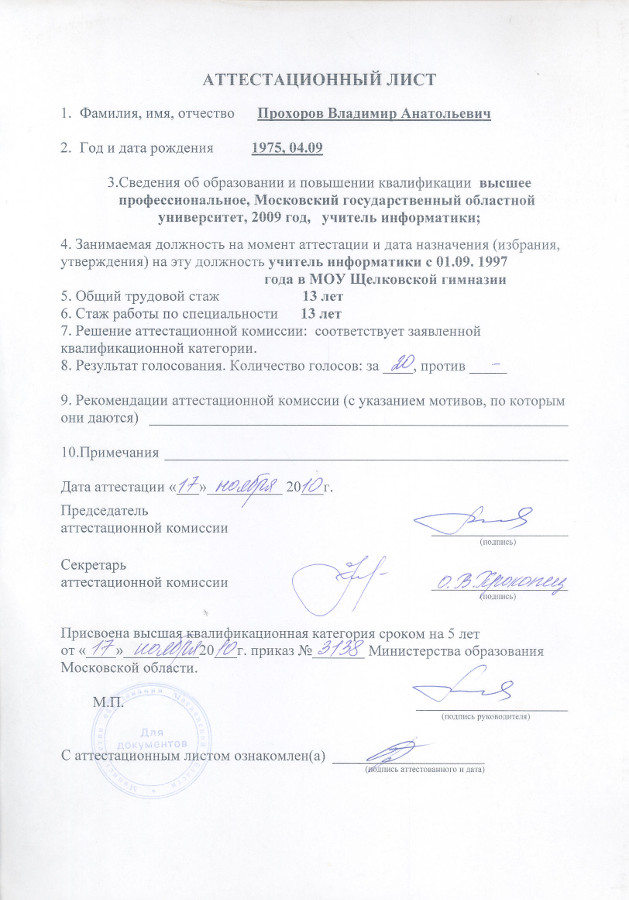 Аттестационный лист