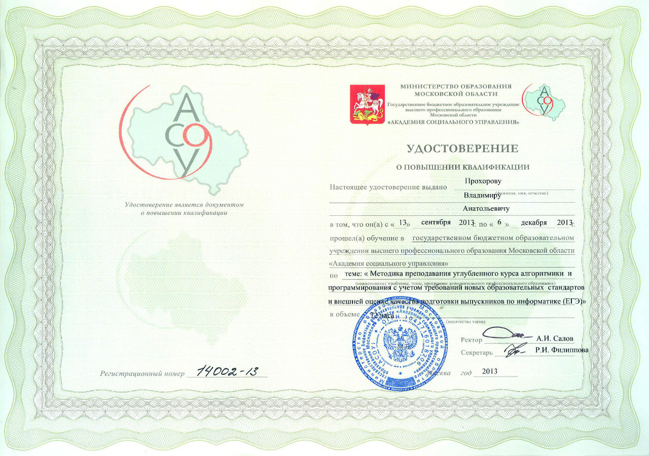 Методика преподавания углубленного курса алгоритмики и программирования с учётом требований новых образовательных стандартов и внешней оценке качества подготовки выпускников по информатике (ЕГЭ) |