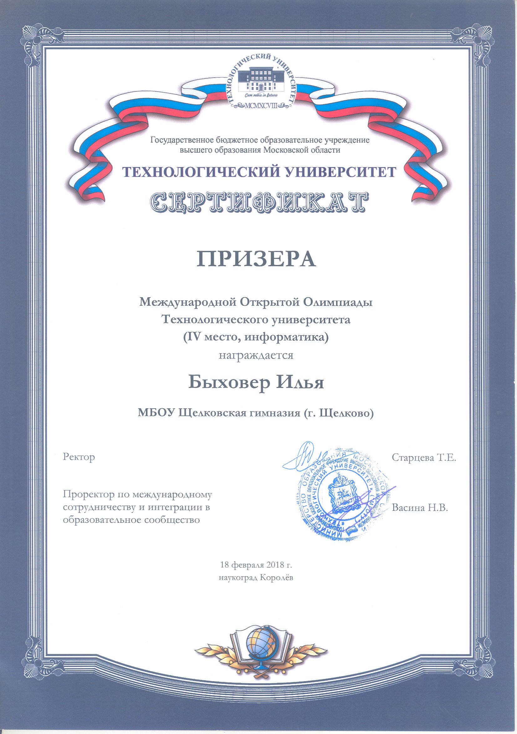 Международная Открытая Олимпиада Технологического университета 18 февраля 2018 года