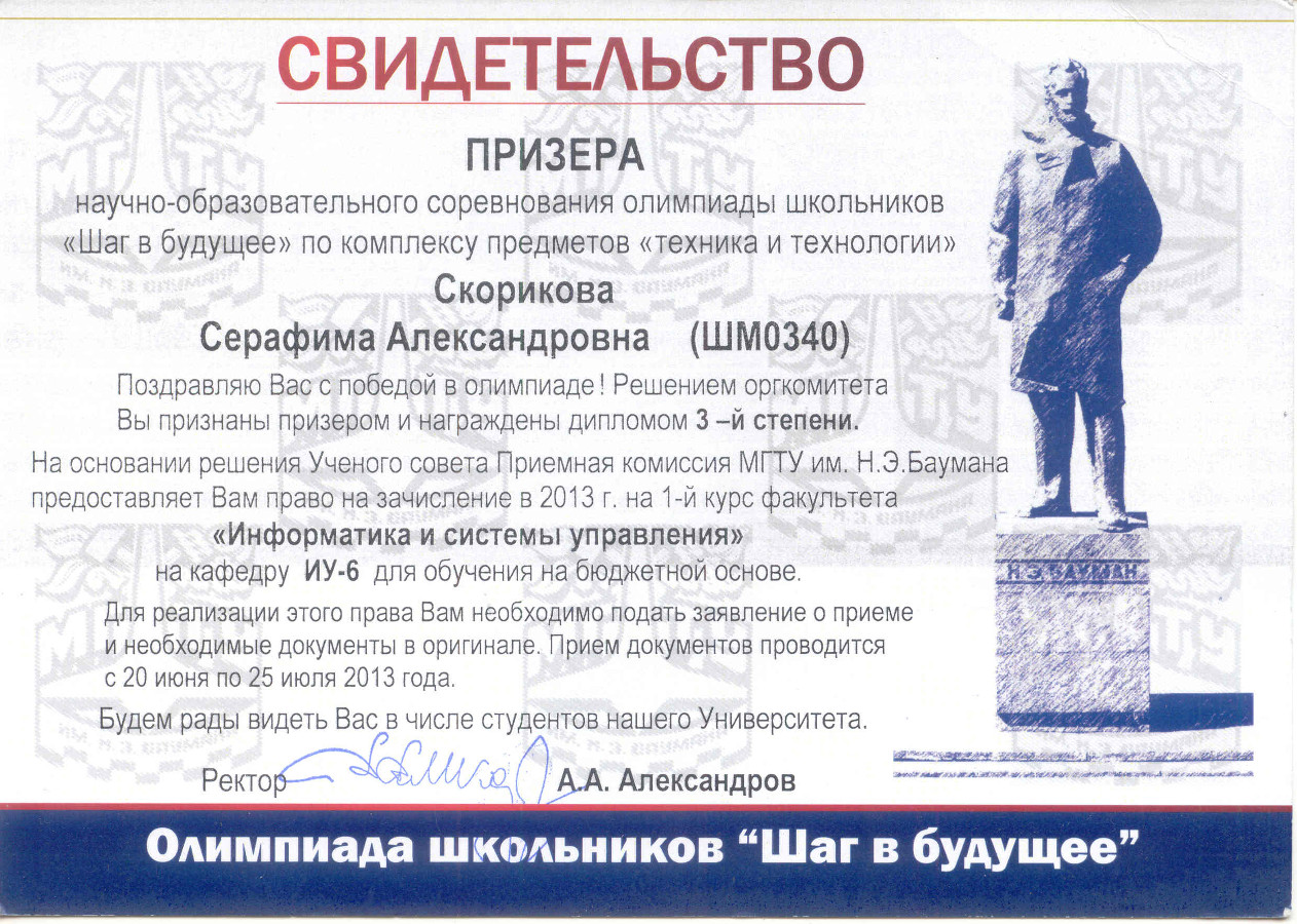 Олимпиада школьников «Шаг в будущее», МГТУ имени Н.Э.Баумана,