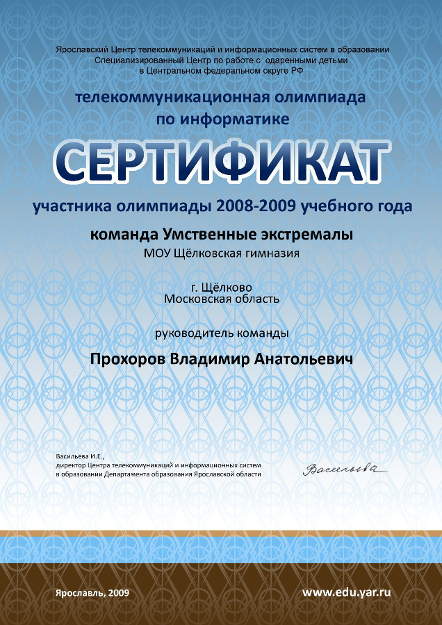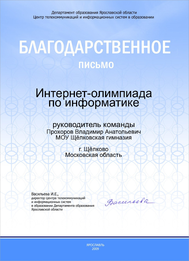 Интернет-олимпиада по информатике, Центр телекоммуникаций и информационных систем в образовании Департамента образования Ярославской области,