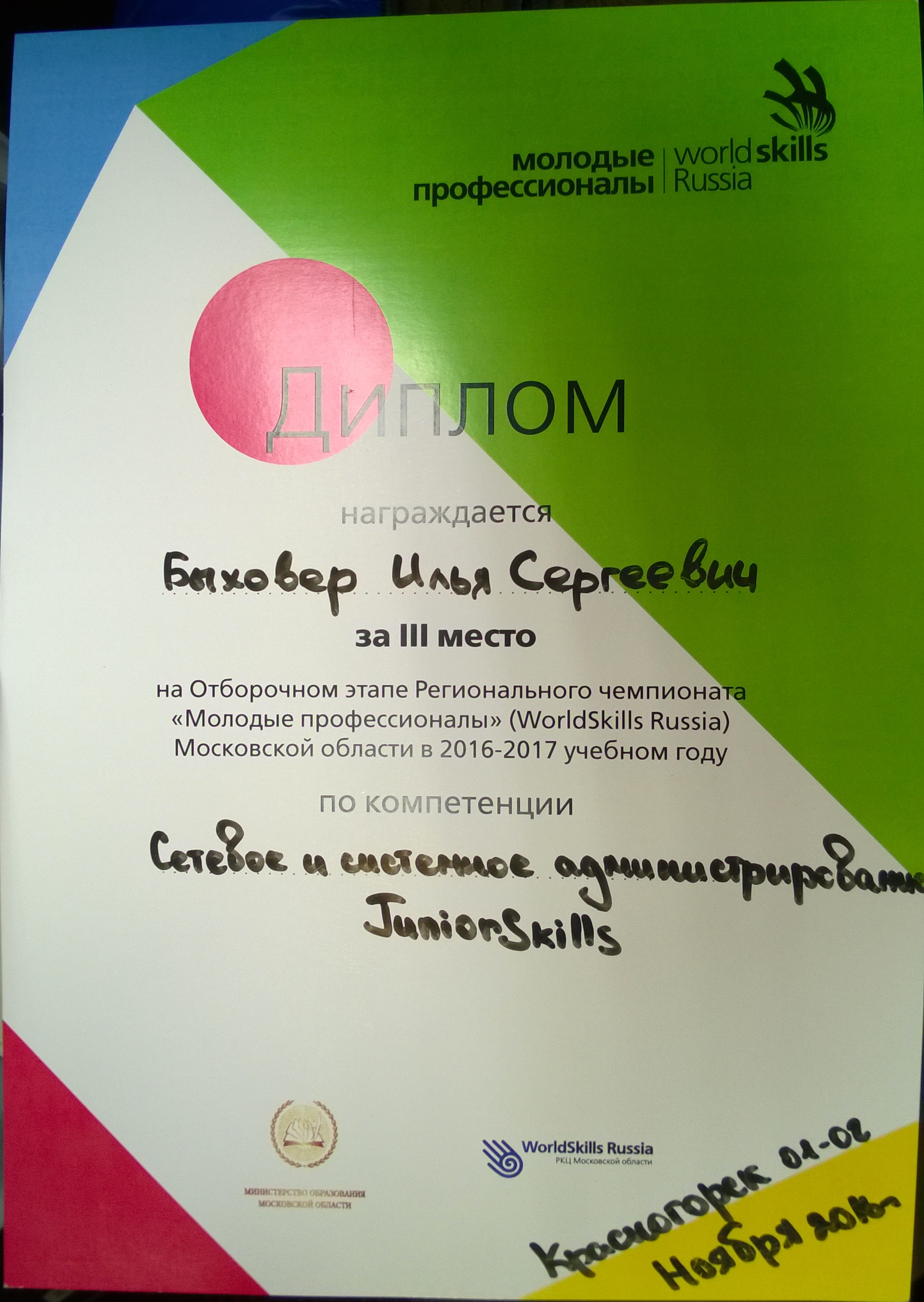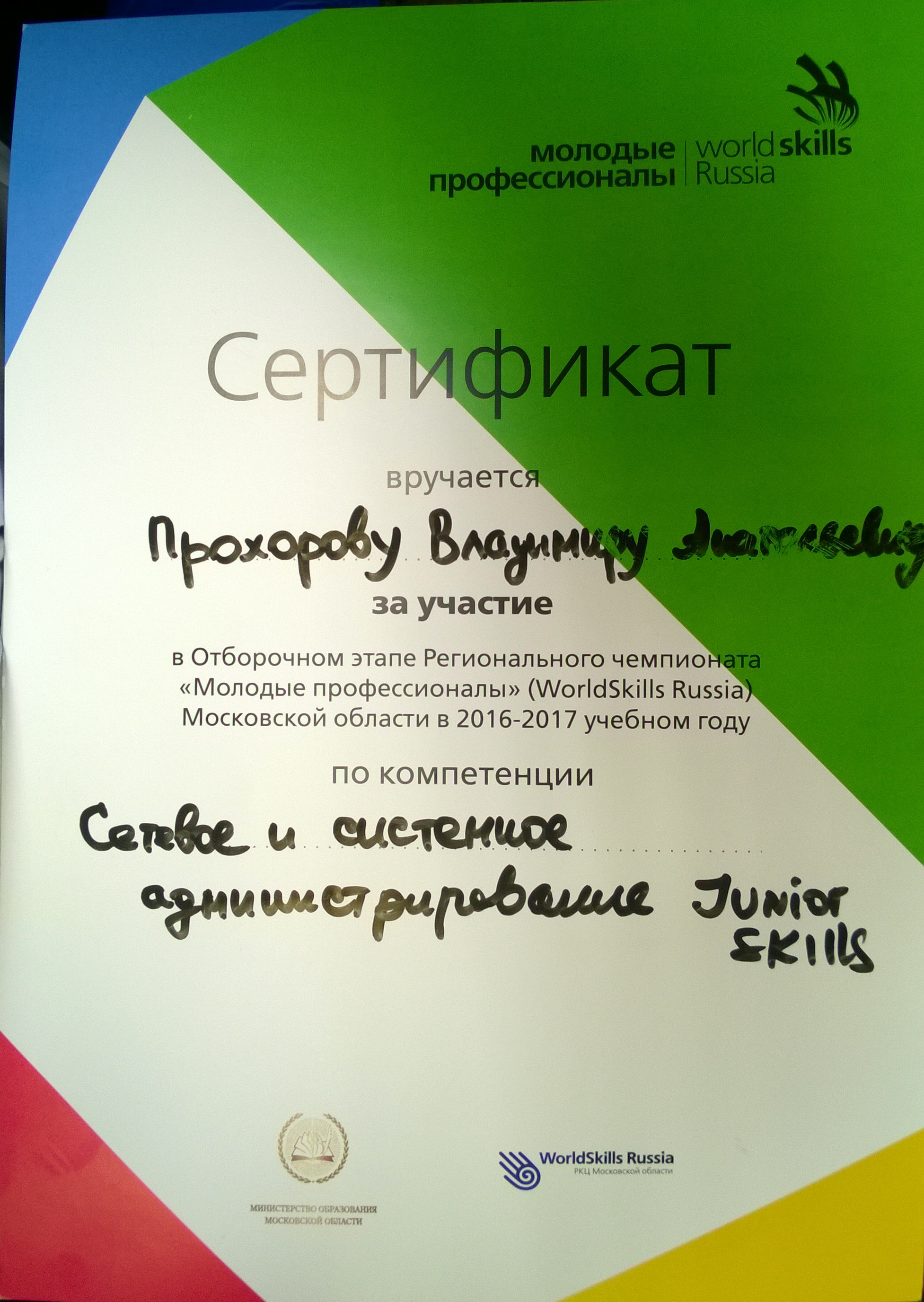 Отборочный этап Регионального чемпионата «Молодые профессионалы» (WorldSkills Russia) Московской области в 2016-2017 учебном году,